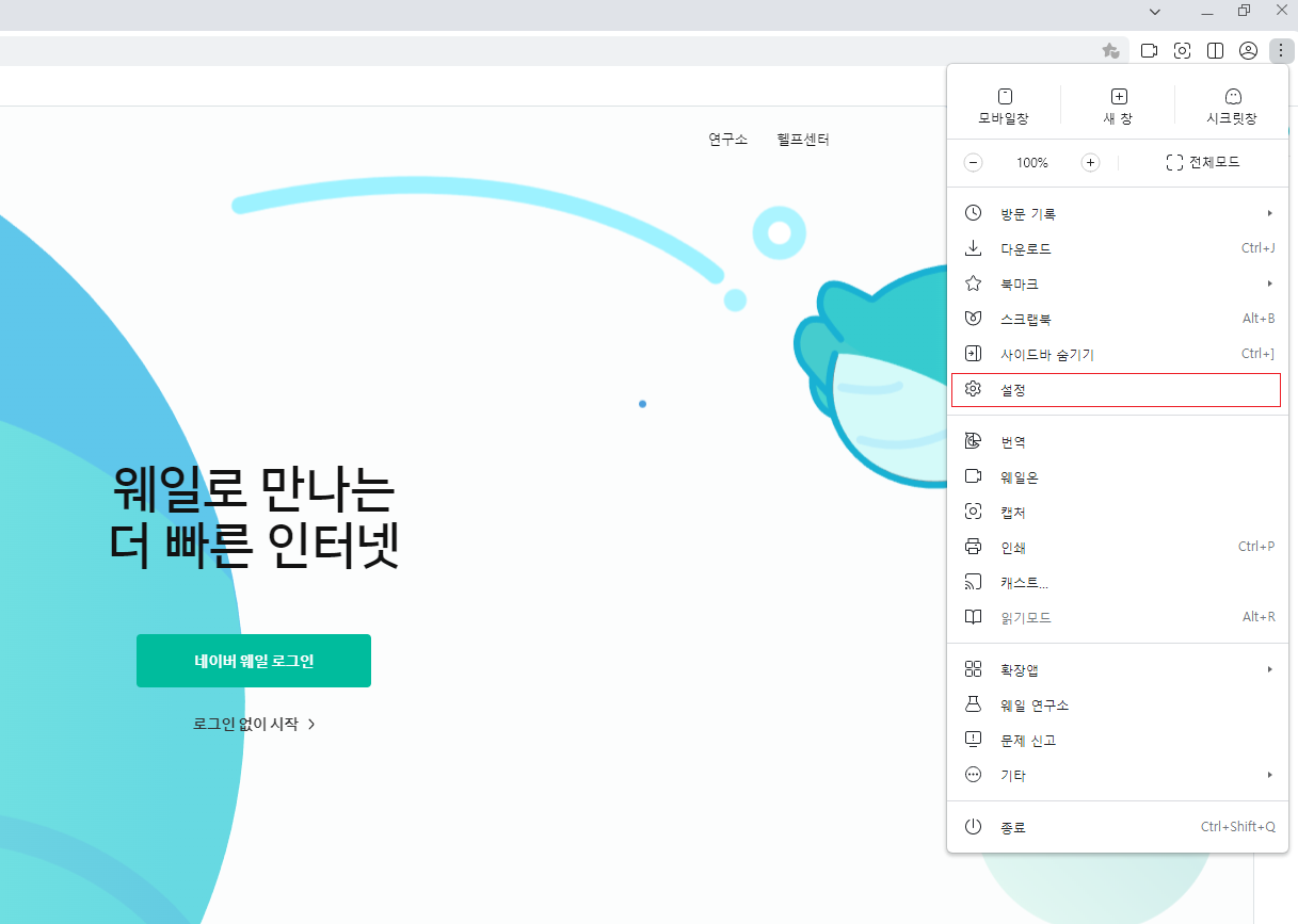 Naver Whale(웨일) 브라우저 캐시 삭제